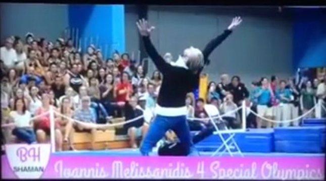 Ο Έλληνας Ολυμπιονίκης Ιωάννης Μελισσανίδης χόρεψε μπροστά σε χιλιάδες θεατές στο Λος Άντζελες, κερδίζοντας το θερμό χειροκρότημα όλων, το Ζεϊμπέκικο της Ευδοκίας.