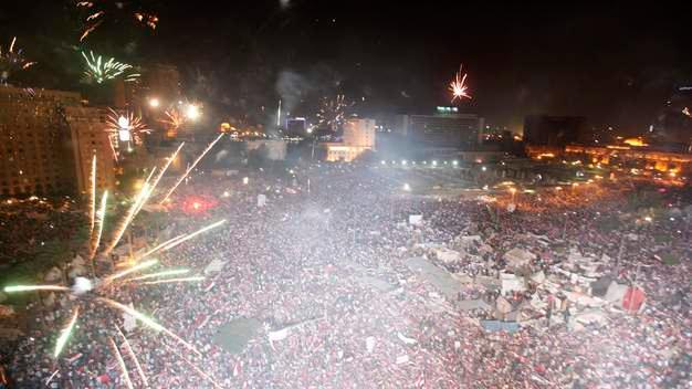 Το διάγγελμα προκάλεσε πανηγυρισμούς στην Πλατεία Ταχρίρ, όπου είχαν συγκεντρωθεί χιλιάδες Αιγύπτιοι.
