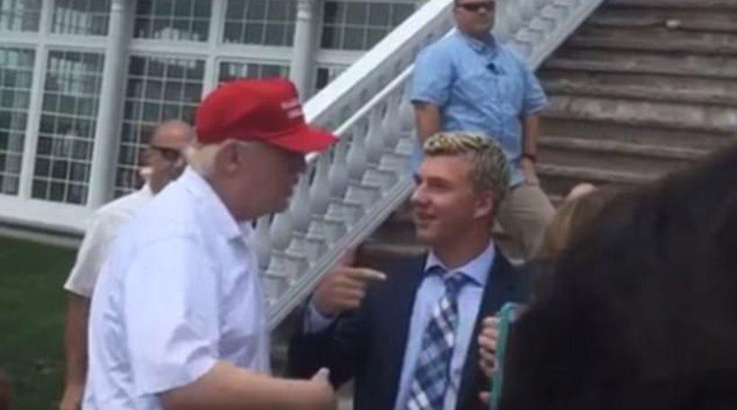 Χωρίς να το σκεφτεί ούτε λεπτό ο Τραμπ κατέβηκε από το αυτοκινητάκι που μεταφέρει τους παίχτες και άρχισε να χαριεντίζεται με τους καλεσμένους.
