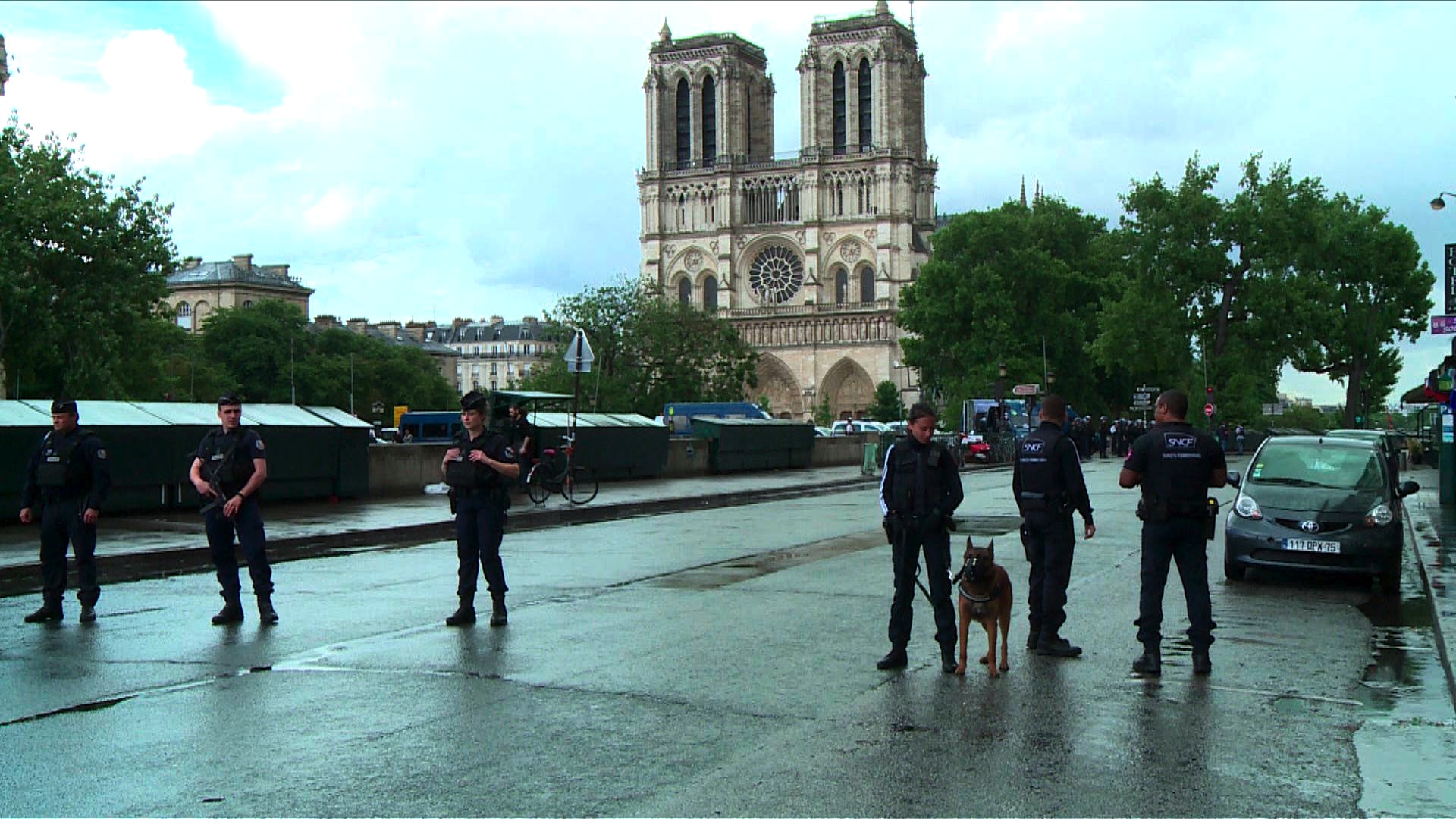 Εδώ ο Farid I. επιτίθεται σε αστυνομικό μπροστά στην Παναγία των Παρισίων: