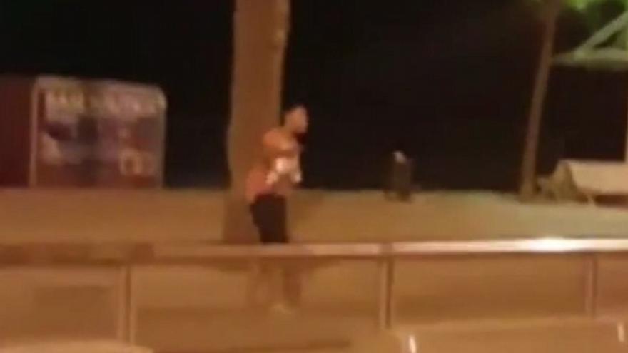 Βρετανός τουρίστας κατέγραψε τη στιγμή που ο τζιχαντιστής, ο οποίος φοράει μία ανοιχτού χρώματος μπλούζα και βερμούδα, ζωσμένος με κάτι που λαμπυρίζει, είναι εγκλωβισμένος στον αστυνομικό κλοιό. Απειλεί και προσπαθεί να διαφύγει.