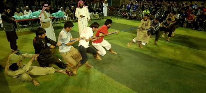 Προσπαθώντας προφανώς να περάσουν την ώρα τους και να προσελκύσουν και άλλους μαχητές δείχνοντας ένα άλλο προφίλ, οι τζιχαντιστές οργανώνουν κάποιου είδους αγώνες.