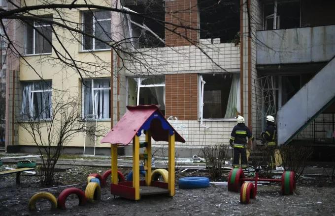 Βομβαρδισμένο τοπίο θυμίζει ο παιδικός σταθμός που βρίσκεται δίπλα στο σημείο όπου έπεσε το πρωί στην πόλη Μπρόβαρι το ελικόπτερο με την ηγεσία του υπουργείου Εσωτερικών της χώρας, με απολογισμό 18 νεκρούς, ανάμεσά τους 3 παιδιά και μέλη της κυβέρνησης.