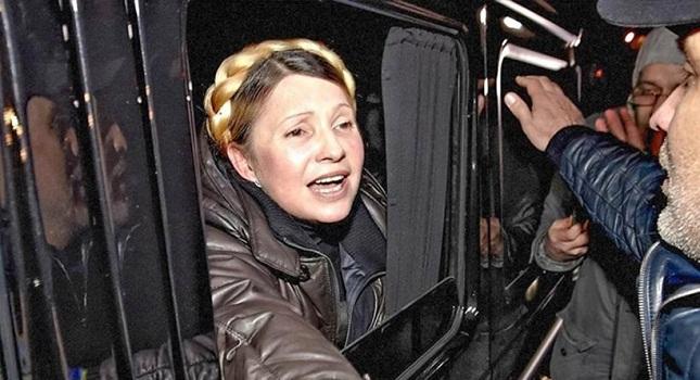 Νωρίτερα και λίγη ώρα μετά την έξοδό της από το νοσοκομείο των φυλακών του Χάρκοβο, όπου παρέμενε κρατούμενη από το 2011 οπότε και καταδικάστηκε σε φυλάκιση, η Τιμοσένκο ξεκαθάρισε άμεσα τις προθέσεις της ενόψει των αλλαγών που συντελούνται στη χώρα. Αρχικά ανέφερε ότι «έφυγε μια δικτατορία» και στη συνέχεια εξέφρασε τη βεβαιότητα ότι η Ουκρανία «θα γίνει ένα μέλος της Ευρωπαϊκής Ένωσης και αυτό θα τα αλλάξει όλα».