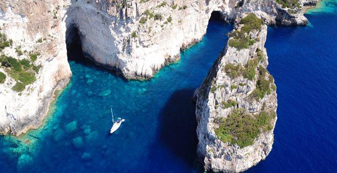 Πρόκειται για τις σμαραγδένιες σπηλιές των Παξών. Ένα δαντελωτό σύμπλεγμα από απότομους βράχους που σμιλεύτηκαν από τα κύματα και τον θαλασσινό αέρα και πήραν μορφές που αποτυπώνονται στη φαντασία του καθενός, κάθε φορά, με διαφορετική εξήγηση.