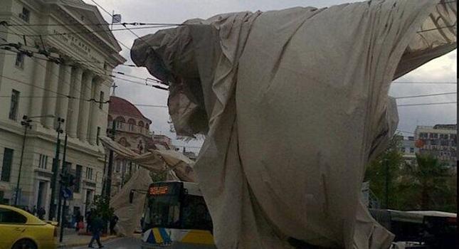 O αέρας δεν αφήνει τίποτα όρθιο στο πέρασμά του. Ακόμα και στο λιμάνι του Πειραιά έχει προκληθεί αναστάτωση αφού ένα κομμάτι πανί με το οποίο ήταν τυλιγμένος ο Πύργος του Πειραιά, έφυγε και έπεσε πάνω στα καλώδια της ΔΕΗ.