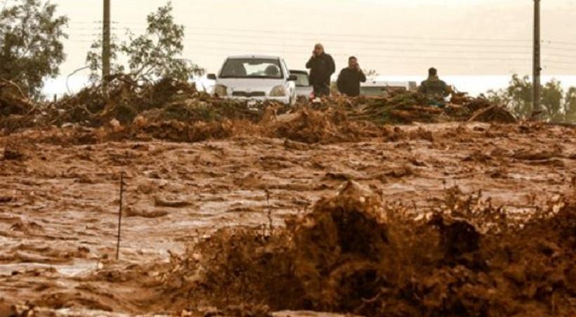 Αυτοκίνητα έχουν βυθιστεί στη λάσπη και σωλήνες έχουν σπάσει. Ανάλογα προβλήματα παρατηρούνται και στη Νέα Εθνική Οδό.