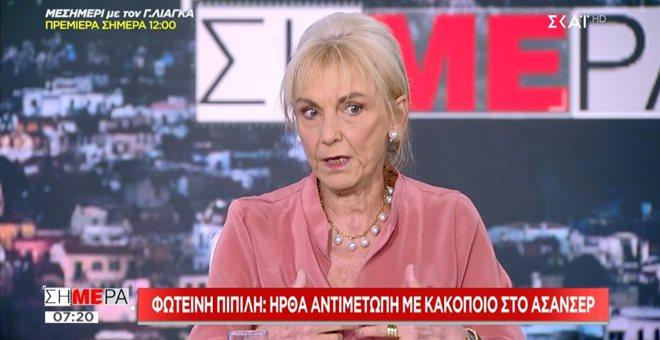 Την περιπέτεια που βίωσε το περασμένο Σάββατο ενώ έμπαινε στο ασανσέρ του σπιτιού της εξιστόρησε η Φωτεινή Πιπιλή.