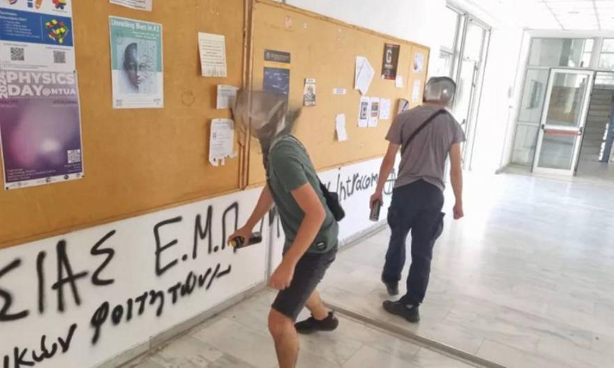 Σύμφωνα με την Καθημερινή, το περιστατικό διαδραματίστηκε στο ΕΜΠ. Όπως περιγράφει σε κείμενό του προς την ακαδημαϊκή κοινότητα ο κ. Παναγιώτης Τσανάκας, κοσμήτορας της Σχολής Ηλεκτρολόγων Μηχανικών και Μηχανικών Υπολογιστών (ΣΗΜΜΥ) του ΕΜΠ, «στις 30 Μαΐου 2024 είχα τυχαία εντοπίσει δύο νεαρούς που έγραφαν ανεξέλεγκτα συνθήματα σε πολλαπλά σημεία, πάνω σε καθαρισμένους τοίχους της σχολής. Στην απαίτησή μου να σταματήσουν αμέσως και να αποχωρήσουν, απάντησαν περιφρονητικά και συνέχισαν απτόητοι το βανδαλιστικό τους έργο. Κατόπιν τούτου, υποχρεώθηκα να τους φωτογραφίσω και να το αναφέρω στον κ. πρύτανη, ο οποίος έκανε μηνυτήρια αναφορά στον εισαγγελέα. Δύο ημέρες μετά, ενημερώθηκα ότι η αστυνομία εντόπισε τον ένα εκ των πρωταγωνιστών, ο οποίος συνελήφθη και οδηγήθηκε στο αυτόφωρο, με την κατηγορία της φθοράς δημόσιας περιουσίας που χρησιμοποιείται προς κοινό όφελος και της απείθειας για άρνηση δακτυλοσκόπησης».