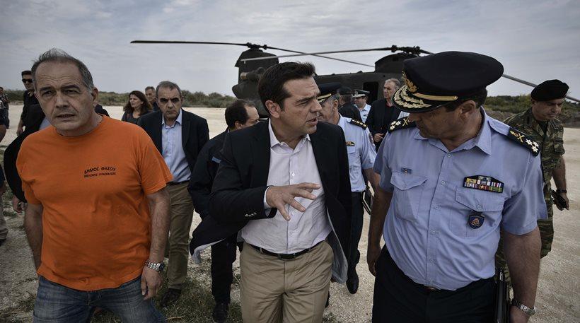 Στο πλαίσιο αυτό ήδη από την Δευτέρα ο Αλέξης Τσίπρας προσπάθησε να αλλάξει σελίδα, για να ξεχαστεί, η χαμηλής απήχησης ομιλία του στις παραγωγικές τάξεις και ο ατυχής εκνευρισμός του, στις ερωτήσεις για τις «παράπλευρες απώλειες» του διαγωνισμού για τις τηλεοπτικές άδειες. Ενώ αρχικά ήταν προγραμματισμένο να επισκεφθεί την Κεφαλονιά, το πρόγραμμα άλλαξε και επισκέφθηκε την Θάσο που επλήγη από τις μεγάλες πυρκαγιές και όπου ανακοίνωσε μέτρα ανακούφισης των πληγέντων και αποκατάστασης των ζημιών. Κυρίως όμως θέλησε να προβάλλει την άμεση κινητοποίηση και την κοινωνική ευαισθησία του πρωθυπουργού και να διανεμηθούν οι φωτογραφίες του. Ο κ. Τσίπρας πέταξε πάνω από τη Θάσο και ακολούθως δήλωσε: «Άμεσα, τις επόμενες ημέρες, αμέσως μετά την κατάσβεση θα έχουμε μια πλήρη καταγραφή, προκειμένου να προβούμε άμεσα και στις αποζημιώσεις. Σε ό,τι αφορά στις αποζημιώσεις σε γεωργούς, κτηνοτρόφους, μελισσοκόμους, το Υπουργείο Αγροτικής Ανάπτυξης, μέσω του ΕΛΓΑ, θα αναλάβει άμεσα. Σε ό,τι αφορά στους ανθρώπους που έχασαν τα σπίτια τους, το υπουργείο Υποδομών θα δώσει τη δυνατότητα μιας αποζημίωσης για επανακατασκευή οικιών. Θα υπάρχει η δυνατότητα μιας αποζημίωσης κατά 80% από χρήματα του Υπουργείου Υποδομών, του Κράτους και 20% από μακροχρόνιο δανεισμό».