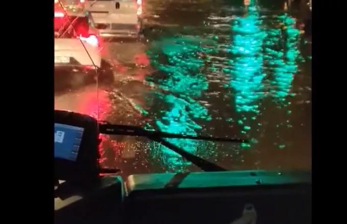 Χαρακτηριστικό είναι και το βίντεο μέσα από το λεωφορείο που δείχνει τον πλημμυρισμένο δρόμο στο συγκεκριμένο σημείο.