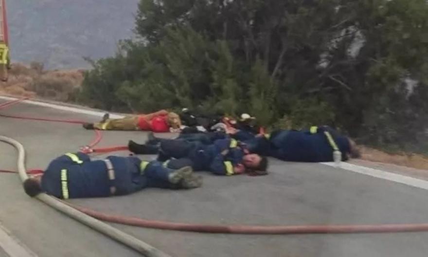 Η Fire Fighting Greece ανήρτησε τη φωτογραφία από τους αποκαμωμένους πυροσβέστες που απεικονίζει πλήρως τη σκληρή μάχη με τις φλόγες που δίνουν φτάνοντας στα όριά τους.