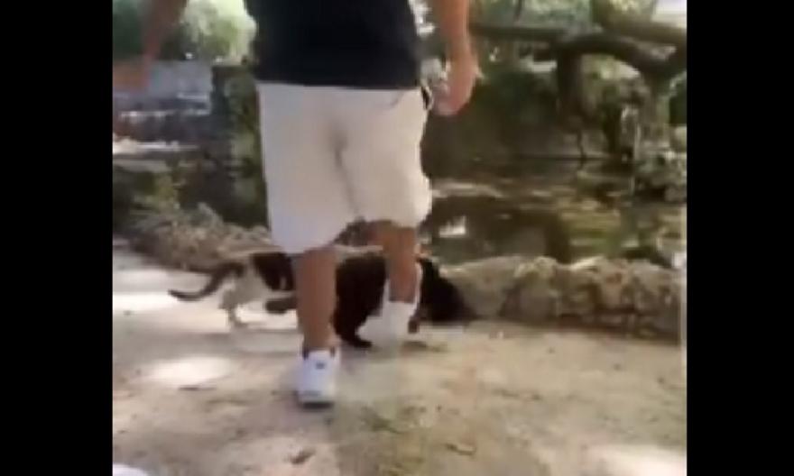Στο βίντεο που αναρτήθηκε στα social media και έχει ήδη αποσταλεί ήδη αποστείλει στην Δίωξη Ηλεκτρονικού Εγκλήματος, φαίνεται το αγόρι να δελεάζει δύο γατούλες με τροφή και όταν το ζώο πλησιάζει και αρχίζει να τρώει, το κλωτσά και το πετά στην λιμνούλα.