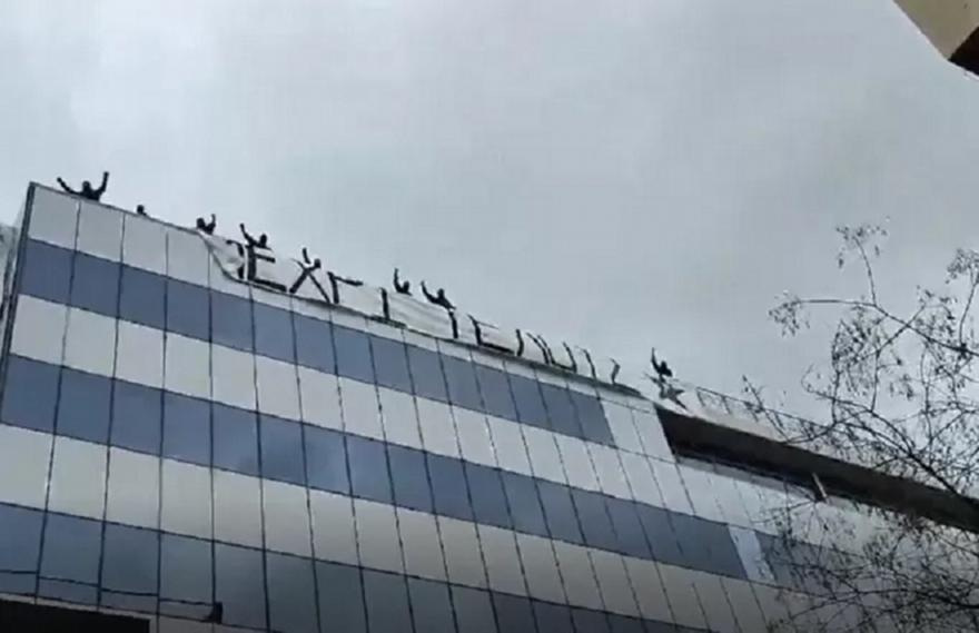 Mέλη του Ρουβίκωνα ανέβηκαν χωρίς να τους αντιληφθεί κανείς στην ταράτσα του κτιρίου της Hellenic Train, στη λεωφόρο Συγγρού και ανήρτησαν πανό για τα Τέμπη που γράφει «μέχρι τέλους», και «δολοφόνοι» ενώ άναψαν και καπνογόνα.