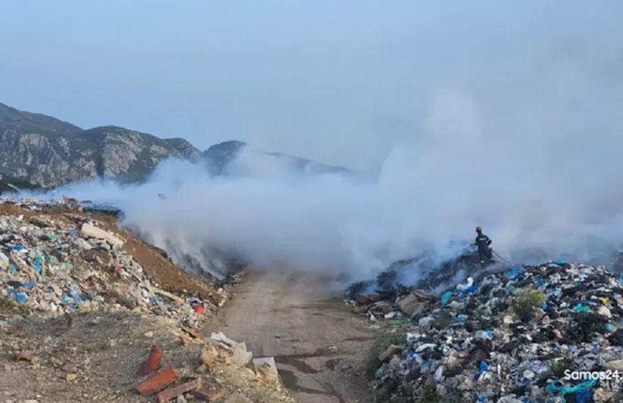 Φωτιά ξέσπασε τις πρώτες πρωινές ώρες της Πέμπτης στο Χώρο Υγειονομικής Ταφής Απορριμμάτων, στη Σάμο.