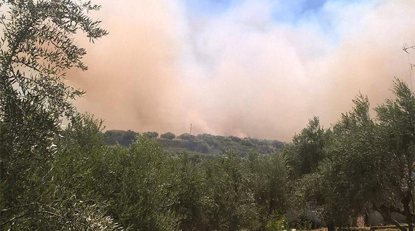 Μεγάλη φωτιά είναι σε εξέλιξη σε αγροτοδασική έκταση στην περιοχή της Κορώνης, στην Μεσσηνία.