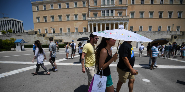 Με ομπρέλες οι τουρίστες στην Αθήνα (φωτογραφία αρχείου)
