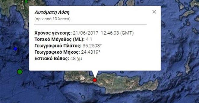 Σεισμική δόνηση 4,1 βαθμών έλαβε χώρα στο Ρέθυμνο πριν από μερικά λεπτά.
