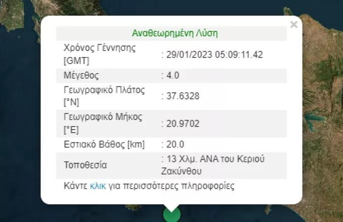 Σεισμική δόνηση μεγέθους4 βαθμών της κλίμακας Ρίχτερ σημειώθηκε στις 7:09 π.μ., ανοιχτά της Ζακύνθου.