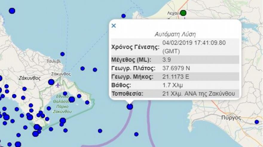 Σεισμική δόνηση μεγέθους 3,9 βαθμών της κλίμακας Ρίχτερ σημειώθηκε στις 19.41 το βράδυ της Δευτέρας στην ευρύτερη περιοχή της Ηλείας, σύμφωνα με το Γεωδυναμικό Ινστιτούτο.