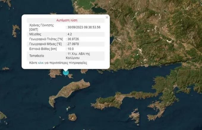 Σεισμική δόνηση 4,2 βαθμών της κλίμακας Ρίχτερ σημειώθηκε στην Κάλυμνο, στις 12:38 το μεσημέρι.