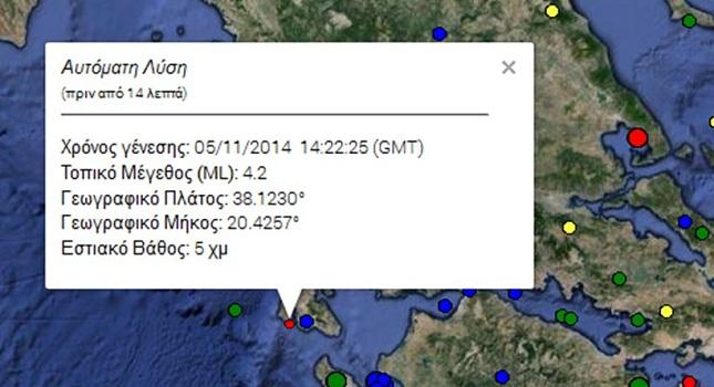 Σεισμική δόνηση μεγέθους 4,2 βαθμών της κλίμακας Ρίχτερ σημειώθηκε στις 16:22 στην Κεφαλονιά.