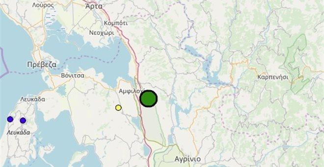 Σεισμός 4,7 βαθμών σημειώθηκε στις 18:08 στην περιοχή του Αγρινίου και της Πρέβεζας, σύμφωνα με ανακοινωθέν του Γεωδυναμικού Ινστιτούτου Αθηνών.