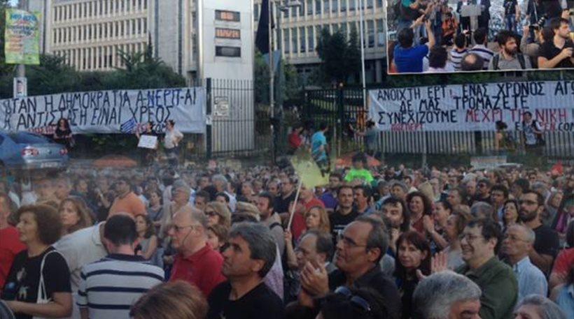 Οι συνδικαλιστές και απολυμένοι της ΕΡΤ βρέθηκαν αμέσως στο σημείο και επιχείρησαν να τους εμποδίσουν, όταν ένας από τους σεκιούριτι τραυμάτισε στο χέρι (στην παλάμη) τον γραμματέα της ΠΟΣΠΕΡΤ Γαβριήλ Κασσιμάτη με το εργαλείο που κρατούσε για να κατεβάσει τα πανό - σύμφωνα με πληροφορίες επρόκειτο για φαλτσέτα ή πένσα.