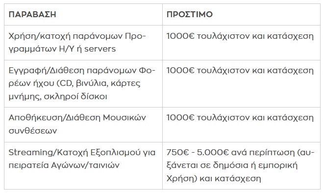 Ακόμη και η απλή παρακολούθηση ενός αγώνα ή μιας ταινίας μέσω streaming θα κοστίζει ...ακριβά. Ακόμη και 1000€ ανάλογα με την παράβαση. Αν δε γίνεται αναμετάδοση ή εμπορική χρήση τότε έχουμε πενταπλασιασμό τουλάχιστον του προστίμου.