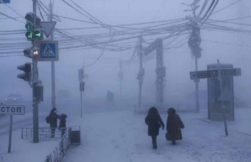 Το Γιακούτσκ, μια από τις πιο κρύες πόλεις του κόσμου που βρίσκεται σε απόσταση περίπου 5.000 χλμ ανατολικά της Μόσχας, είχε καλυφθεί από παγωμένα σύννεφα και ομίχλη, όπως έδειξαν εικόνες από drone.