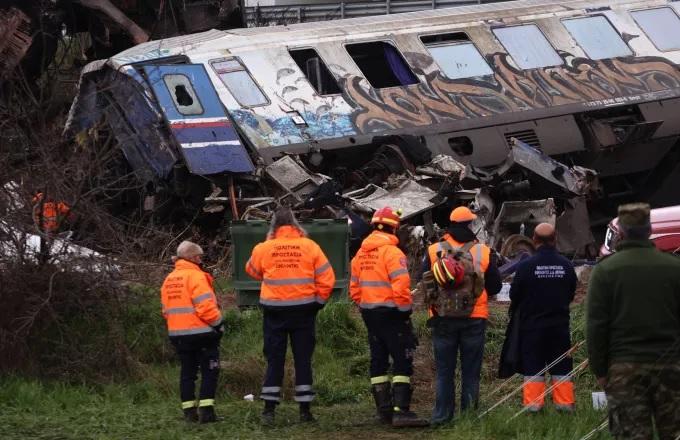 Αστυνομικοί και εθελοντές πυροσβέστες βρίσκονται στον στενό πυρήνα του σιδηροδρομικού δυστυχήματος.