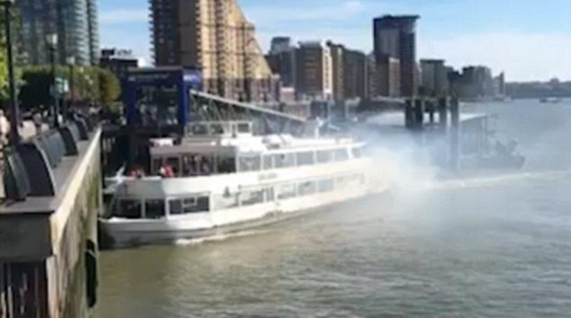 Ένα σκάφος αναψυχής με σχεδόν 150 επιβάτες έπεσε σήμερα το απόγευμα πάνω σε προβλήτα στον ποταμό Τάμεση, όταν ξέσπασε πυρκαγιά στο μηχανοστάσιο.