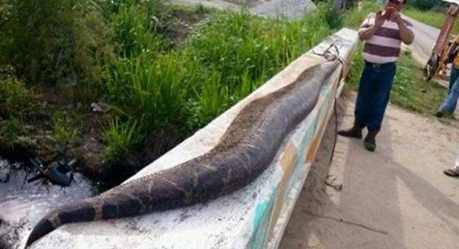 Οι κάτοικοι του χωριού Benito Juarez σκότωσαν, χτυπώντας το με ξύλα, ένα τεράστιο φίλι μήκους 7,5 περίπου μέτρων