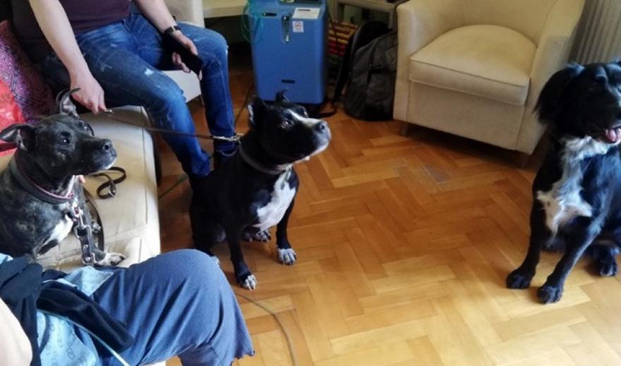 Στο σαλόνι του Ευρωπαϊκού Οικοτροφείου, η κ. Ιωάννα κάθεται παρέα με την κ. Δήμητρα, συζητούν και χαμογελάνε, κρατώντας στα χέρια τους λιχουδιές για σκύλους. Ανάμεσά τους στέκεται ένα μικρόσωμο πίτμπουλ, η Ντολμάς ή ντολμαδάκι, όπως το αποκαλούν, ηλικίας 13 ετών. Λίγο πιο πέρα βρίσκεται η κ. Μάρθα ενώ δίπλα της κάθεται ένα μεγαλόσωμο πίτμπουλ, ο Μπόμπος.