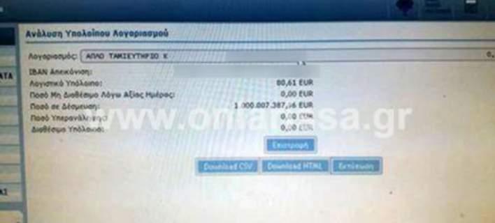 Ο αγρότης θέλησε να ελέγξει τον τραπεζικό λογαριασμό του, μέσω διαδικτύου. Ξαφνικά όμως είδε στην οθόνη του λογαριασμού του ότι έχει δεσμευθεί το ποσό των 1.000.007.387,96 ευρώ!