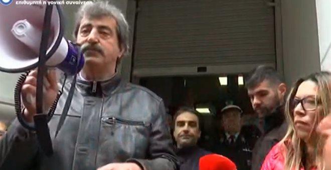 Ο αναπληρωτής υπουργός Υγείας βγήκε αιφνιδιαστικά με τηλεβόα από το υπουργείο, και άρχισε να μιλάει στις συγκεντρωμένες, την ώρα που ο προέδρος της Πανελλήνιας Ομοσπονδίας Εργαζομένων Δημόσιων Νοσοκομείων αντιδρούσε έντονα στα λεγόμενα του κ. Πολάκη. Ο κ. Γιαννάκος προσπαθούσε μάταια να πάρει τον τηλεβόα από τον υπουργό, ενώ μόλις ολοκλήρωσε την ολιγόλεπτη ομιλία του ξαναμπήκε στο υπουργείο Υγείας, με τον πρόεδρο του ΠΟΕΔΗΝ να τού ζητά να ακούσει τον αντίλογο.