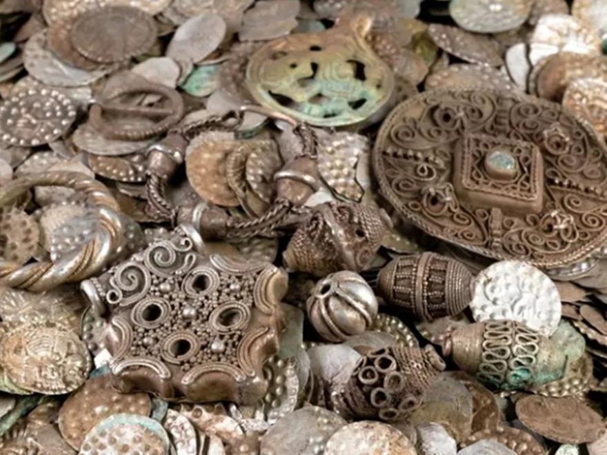 Sweden: Archaeologists study the recovery of a vast silver treasure which includes pearls, coins rings and more from the 20th century
