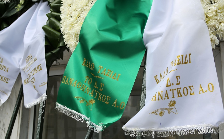 Ο Ερασιτέχνης Παναθηναϊκός τιμάει τη μνήμη του Λαυρέντη Μαχαιρίτσα, που «έφυγε» από τη ζωή την περασμένη Δευτέρα, καθώς κατέθεσε στεφάνι στην κηδεία του γνωστού τραγουδοποιού στο στο Νεκροταφείο Ζωγράφου.