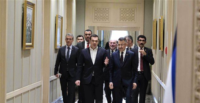 Σε εξέλιξη η συνάντηση του πρωθυπουργού Αλέξη Τσίπρα με τον Πρόεδρο της Τουρκίας Ρετζέπ Ταγίπ Ερντογάν, στο Προεδρικό Μέγαρο, στην Άγκυρα.