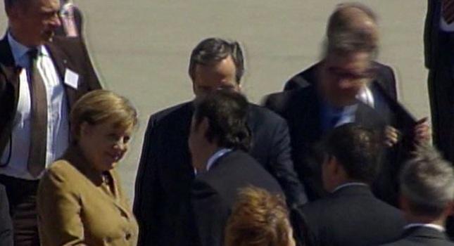 Στο αεροδρόμιο «Ελ. Βενιζέλος» υποδέχτηκε ο πρωθυπουργός Αντώνης Σαμαράς τη Γερμανίδα καγκελάριο. Η επίσκεψη της Άγκελα Μέρκελ, η οποία θα παραμείνει στην Αθήνα λίγες μόλις ώρες, συνιστά ψήφο εμπιστοσύνης στις προοπτικές της ελληνικής οικονομίας.