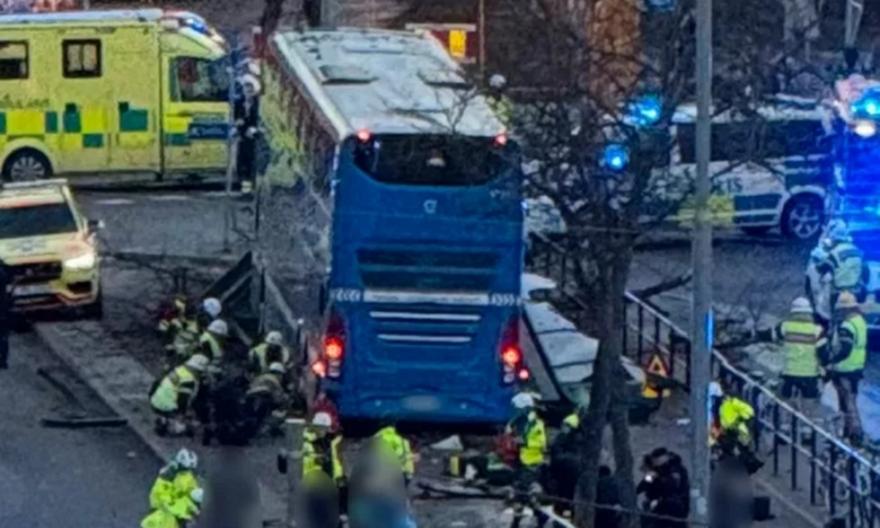 Σοβαρό δυστύχημα νωρίτερα την Παρασκευή στο κέντρο της Στοκχόλμης. Σύμφωνα με τις πρώτες πληροφορίες, ένα διώροφο λεωφορείο φαίνεται να βγήκε από την πορεία του και να παρέσυρε πεζούς.