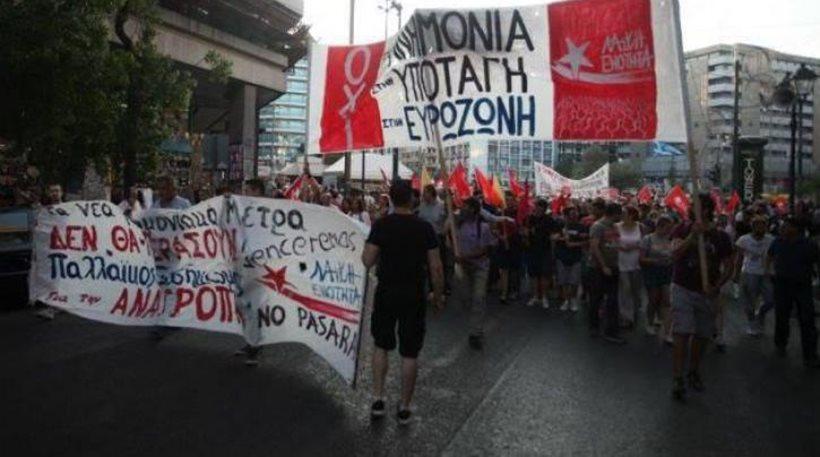 Συγκέντρωση και πορεία διαμαρτυρίας, με αφορμή τη συμπλήρωση ενός χρόνου από τη διεξαγωγή του δημοψηφίσματος, πραγματοποίησαν μέλη της ΑΝΤΑΡΣΥΑ και της ΟΚΔΕ.