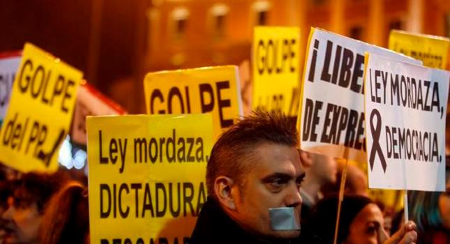 «Όχι στο φίμωτρο» και «Ο φασισμός θέλει να φιμώσει τον λαό» έγραφαν τα δύο μεγάλα πανώ που κρατούσαν οι διαδηλωτές. Ισχυρές δυνάμεις της αστυνομίας είχαν αναπτυχθεί απέναντί τους, αποκλείοντας την πρόσβαση στη Βουλή.