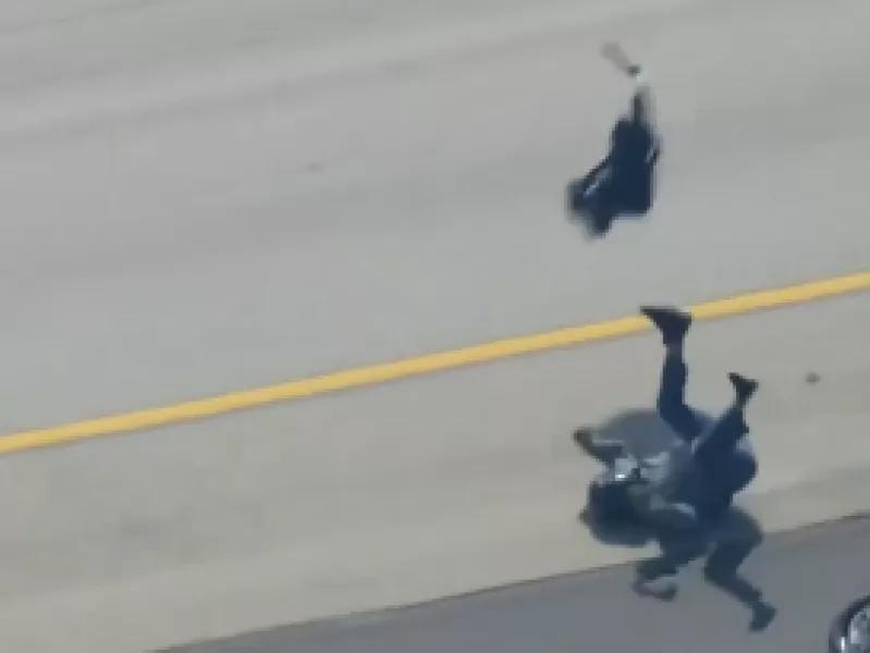 Ένα σοκαριστικό βίντεο από μια συγκλονιστική καταδίωξη στο Λος Άντζελες ήρθε στη δημοσιότητα, με ένα αυτοκίνητο που οδηγούσε αστυνομικός εκτός υπηρεσίας, να γκρεμίζει αναβάτη μηχανής ο οποίος λίγο νωρίτερα είχε σκοτώσει συνάδελφό του.