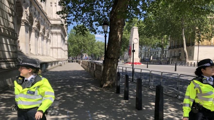 Η αστυνομία απέκλεισε ένα μεγάλο κομμάτι στο κέντρο του Λονδίνου, κοντά στην πρωθυπουργική κατοικία, στο νούμερο 10 της Ντάουνινγκ Στριτ.