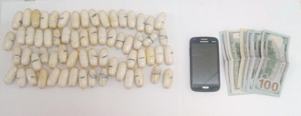 Ο 35χρονος, ο οποίος αφίχθη αεροπορικώς στην Ελλάδα από το Σάο Πάολο, μέσω Ζυρίχης, μετέφερε, με τη μέθοδο της κατάποσης, μέσα σε 64 αυτοσχέδιες ωοειδείς συσκευασίες, ποσότητα κοκαΐνης συνολικού βάρους 825 γραμμαρίων. Επίσης, στην κατοχή του βρέθηκε και κατασχέθηκε το χρηματικό ποσό των 1.200 δολαρίων ΗΠΑ.