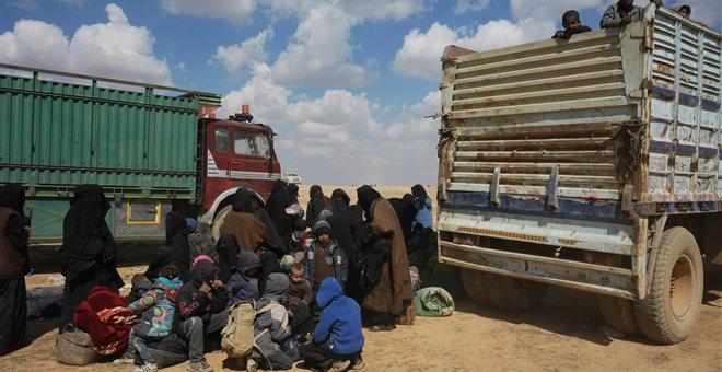 Οι τζιχαντιστές που παραδόθηκαν ήταν ανάμεσα στους περισσότερους από 2.000 ανθρώπους που έφυγαν σήμερα από την Μπαγούζ, μεταφερόμενοι με φορτηγά.