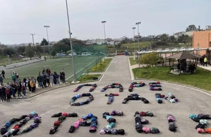 Συγκλονίζει η πρωτοβουλία μαθητών σε διάφορα σχολεία της χώρας, οι οποίοι με τις σχολικές τσάντες τους σχημάτισαν την φράση «πάρε όταν φτάσεις» στο προαύλιο του σχολείου.