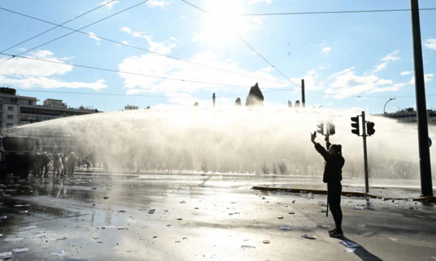 Η ΕΛ.ΑΣ επιστράτευσε χημικά και αύρες προκειμένου να απομακρύνει τους κουκουλοφόρους. Μετά το Ζάππειο και την Ομόνοια, η υδροφόρα «Αίαντας» πήγε και στο Σύνταγμα, προκειμένου με τις ρίψεις νερού να διαλύσουν τη συγκέντρωση, στο σημείο το οποίο βρισκόντουσαν διαδηλωτές όπως φαίνεται και από το σχετικό βίντεο.