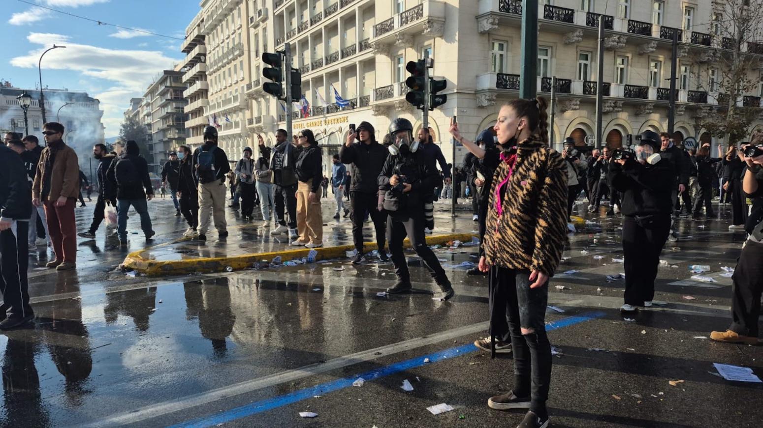 Eπεισόδια στο κέντρο της Αθήνας συνέχιζαν να σημειώνονται ακόμη και τέσσερις ώρες μετά την έναρξη της μεγαλειώδους πορείας για τα Τέμπη.